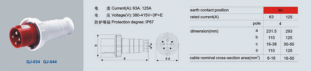 Your location: Home > Product > First generation socket > Industrial plug > QJ-034 QJ-044